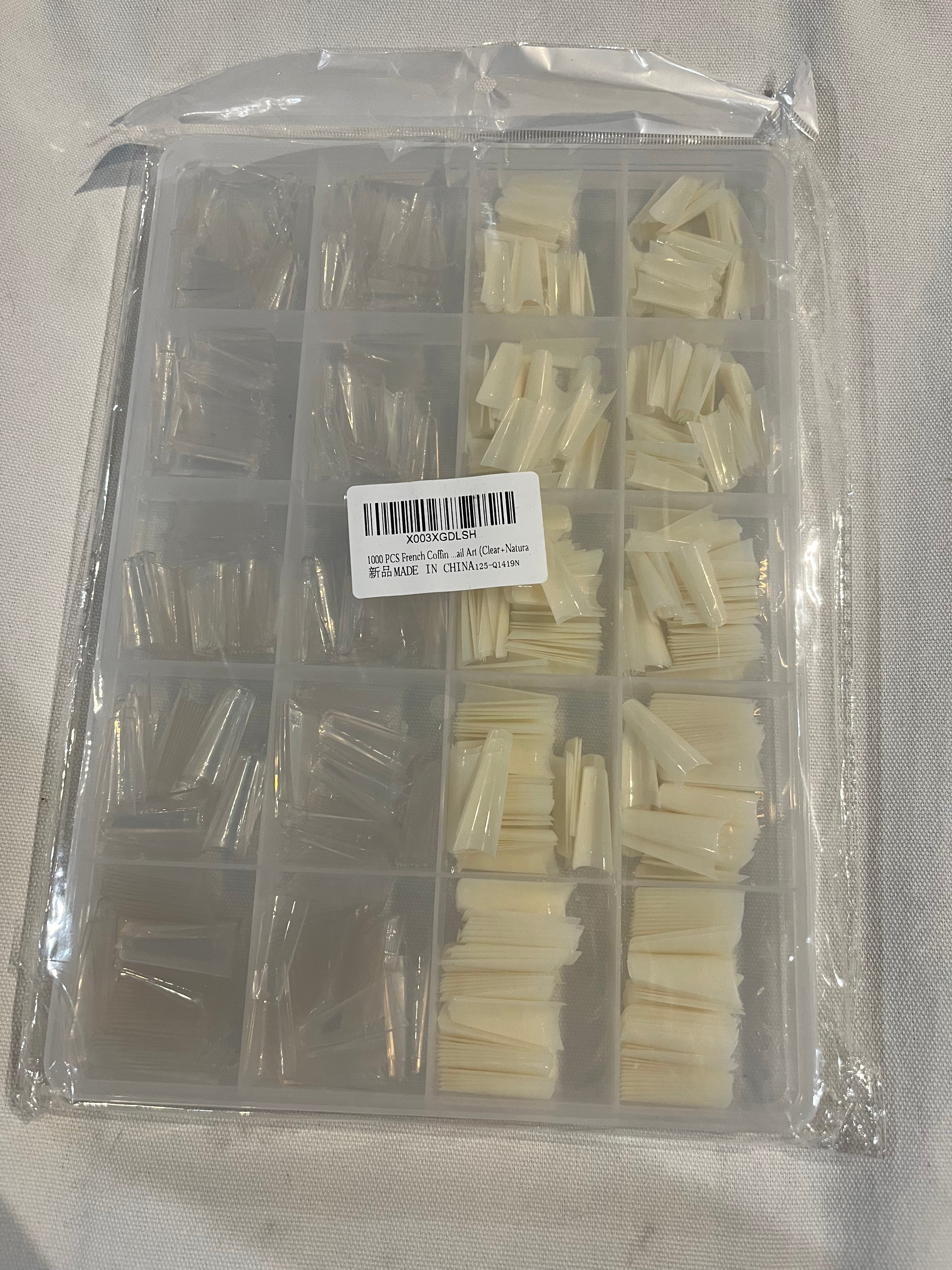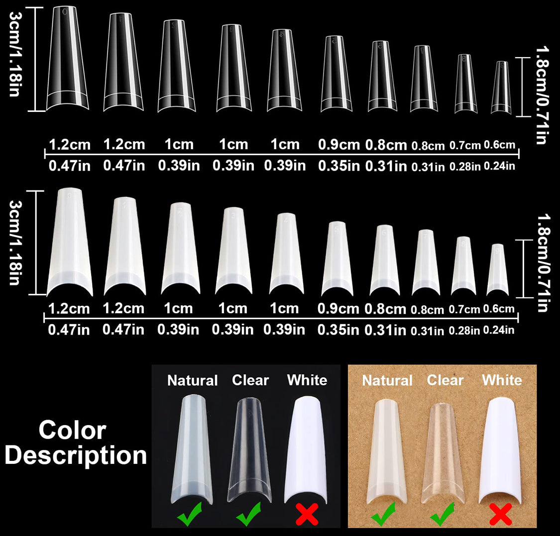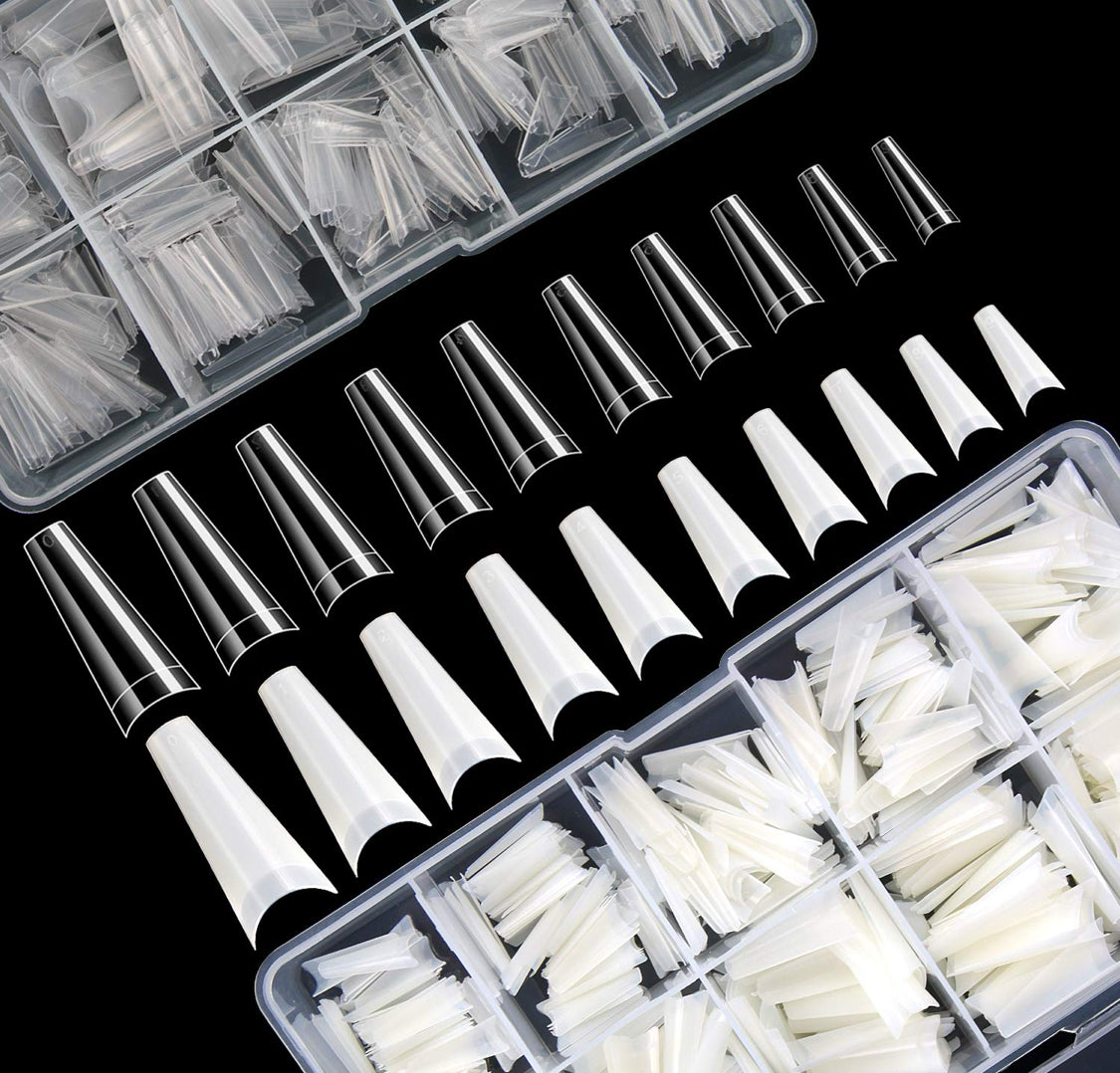 The FEBSNOW 1000 PCS French Coffin Ballerina Nail Tips set includes 10 sizes of half-cover clear acrylic nail tips — perfect for nail salons or at-home nail artists. Designed in a modern coffin/ballerina shape, these durable, lightweight tips are ideal for creating custom acrylic, gel, or press-on manicures. Comes organized in clear plastic storage cases for easy access and sorting.