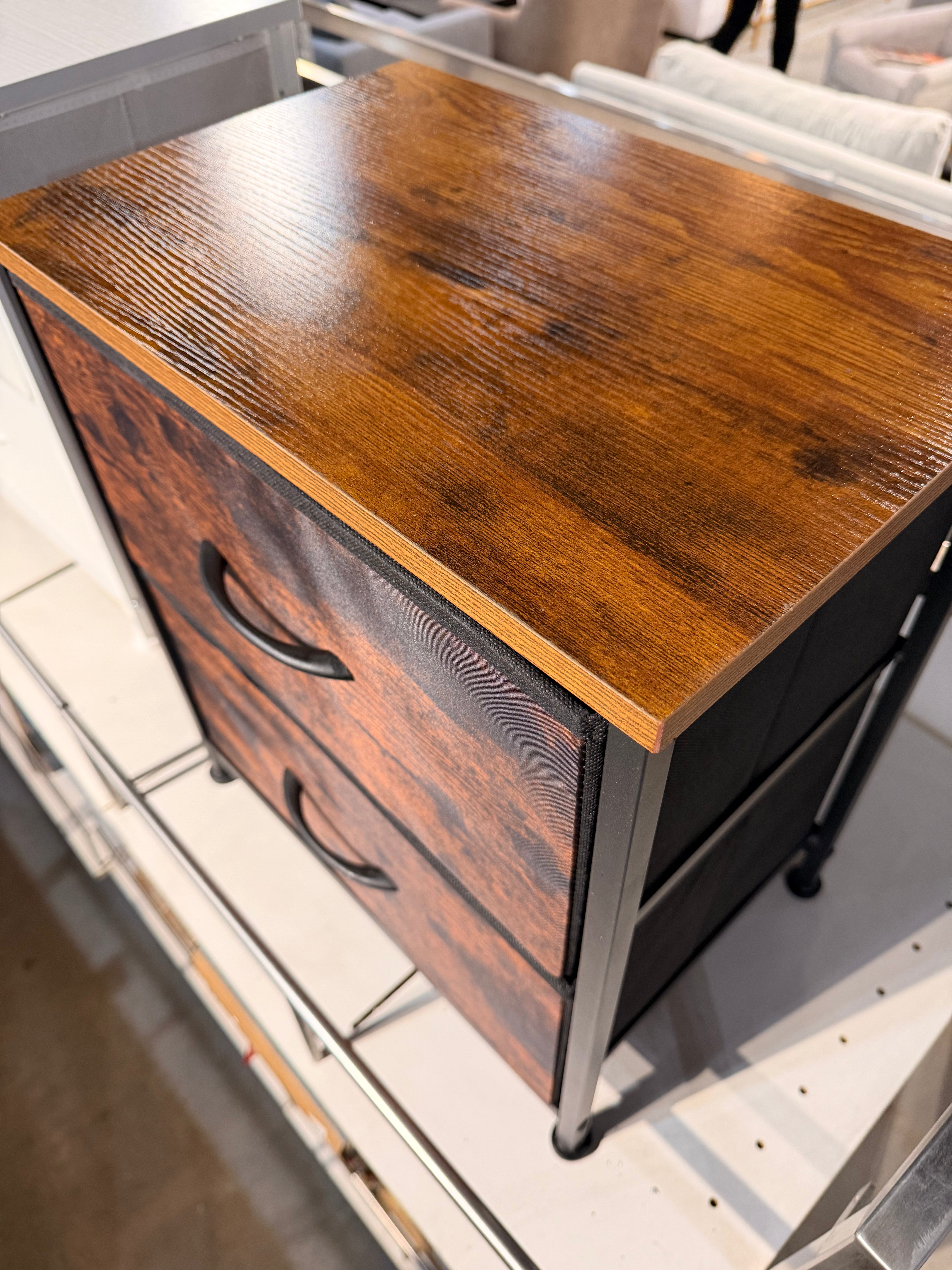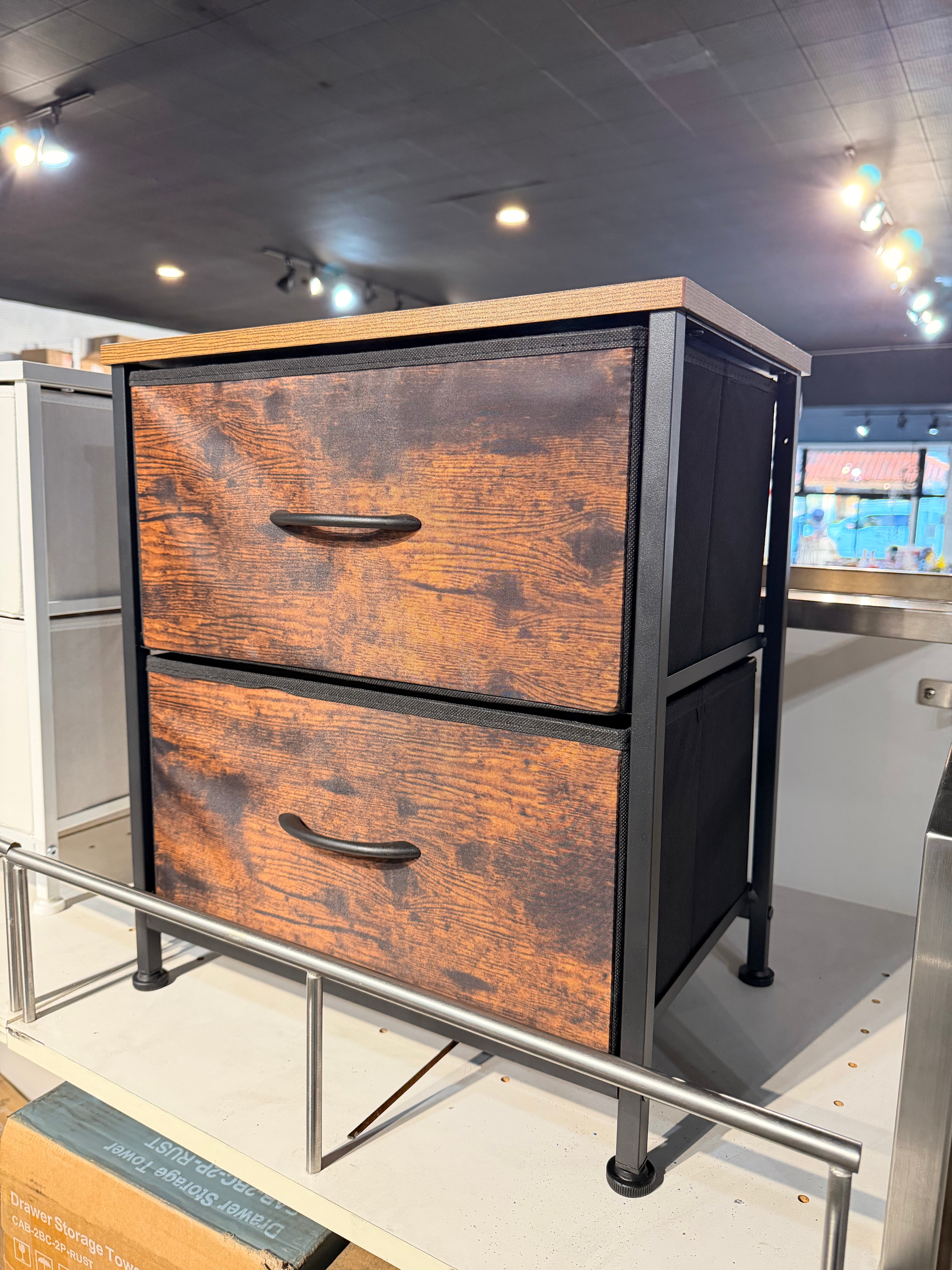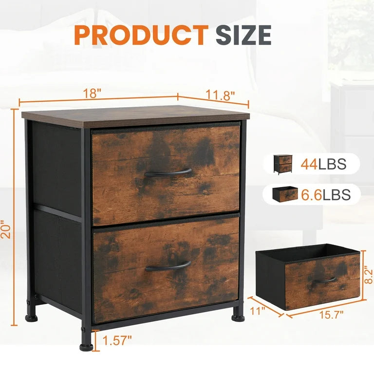 2-Drawer Nightstand Set of 2 with Fabric Storage Bins – Compact Rustic Brown Tables for Bedroom & Living Room