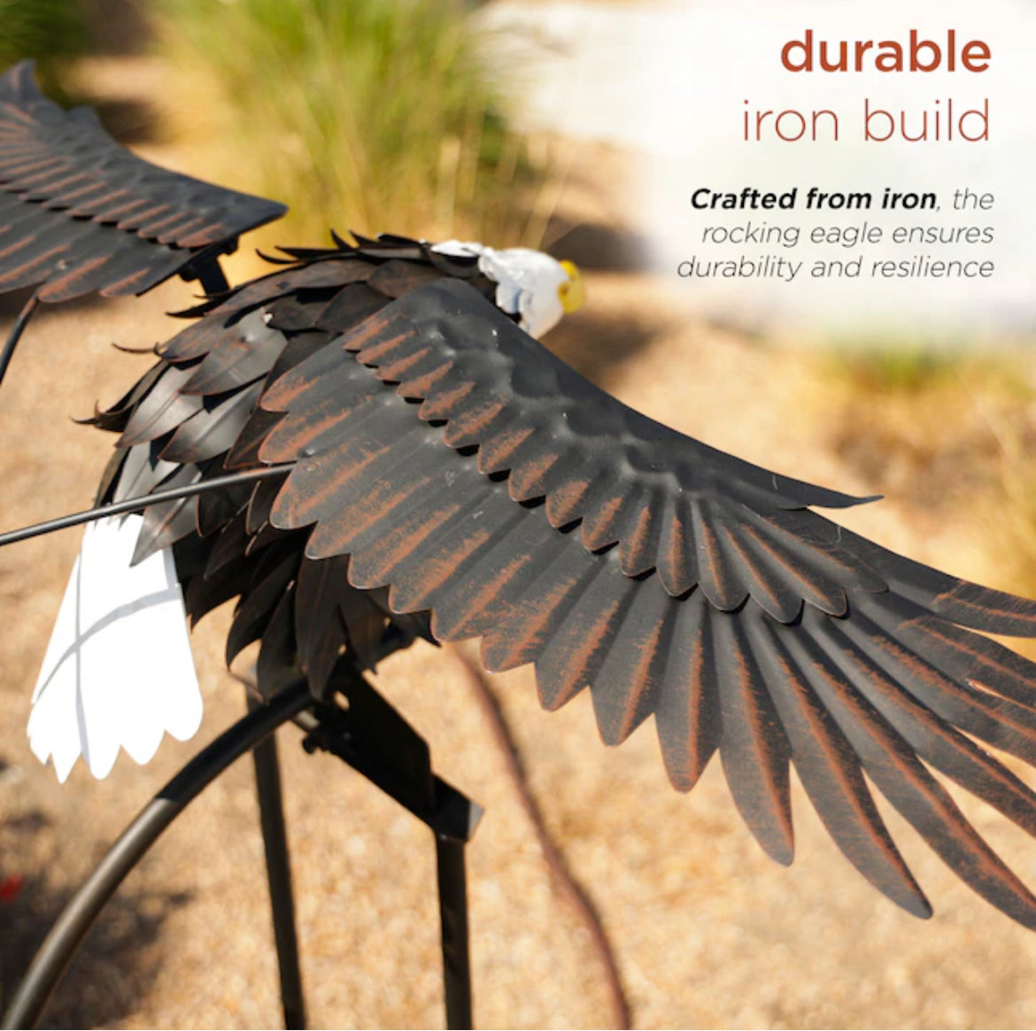 56 in. Tall Multicolor Metal Rocking Eagle Stake Garden Wind Spinner
