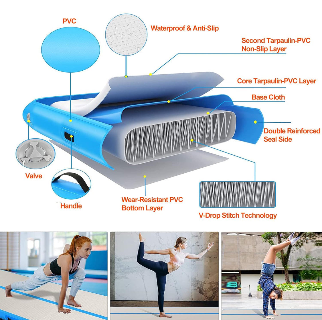 20ft Inflatable Air Gymnastics Mat Track Tumbling Mats with Electric Air Pump 4 Inches Thick for Home Use/Training/Yoga/Outdoor/Water