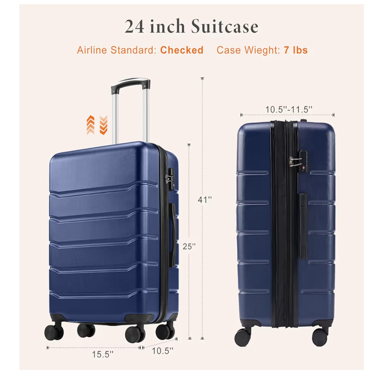 Blue - Hardside Luggage with Spinner Wheels - 24 Inch Expandable Suitcase, TSA Lock, Lightweight Hard Shell Carry On & Checked Luggage - Durable ABS/PC, 360° Silent Wheels - Blue