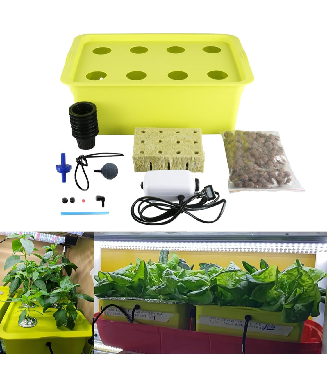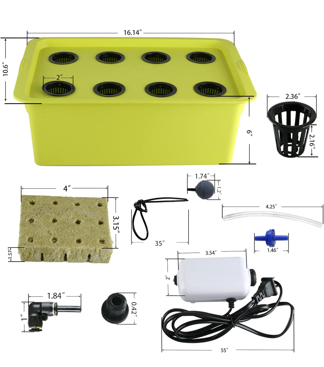 Deep Water Culture Hydroponic System Growing Kit, Medium Size w/Airstone, 6 Plant Sites (Holes) Bucket, Air Pump, Rockwool - Best Indoor Herb Garden for Lettuce, Mint, Parsley (8 Sites)