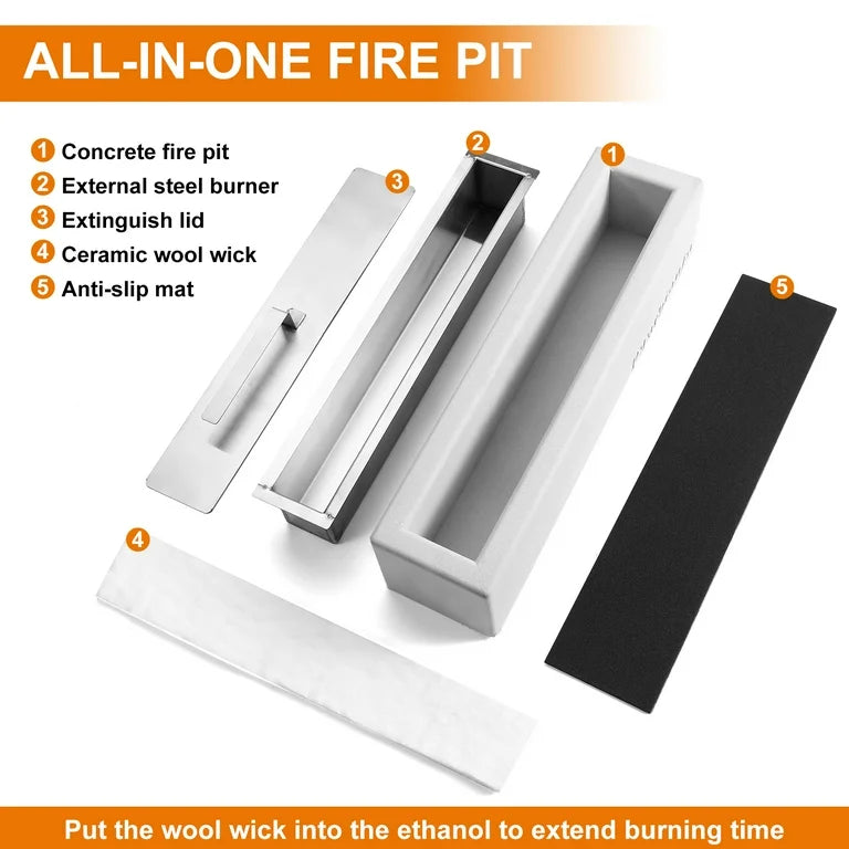 Tabletop Fire Pit - Stylish Concrete Table Fire Pit for Indoor & Outdoor Use - (14.5inch)