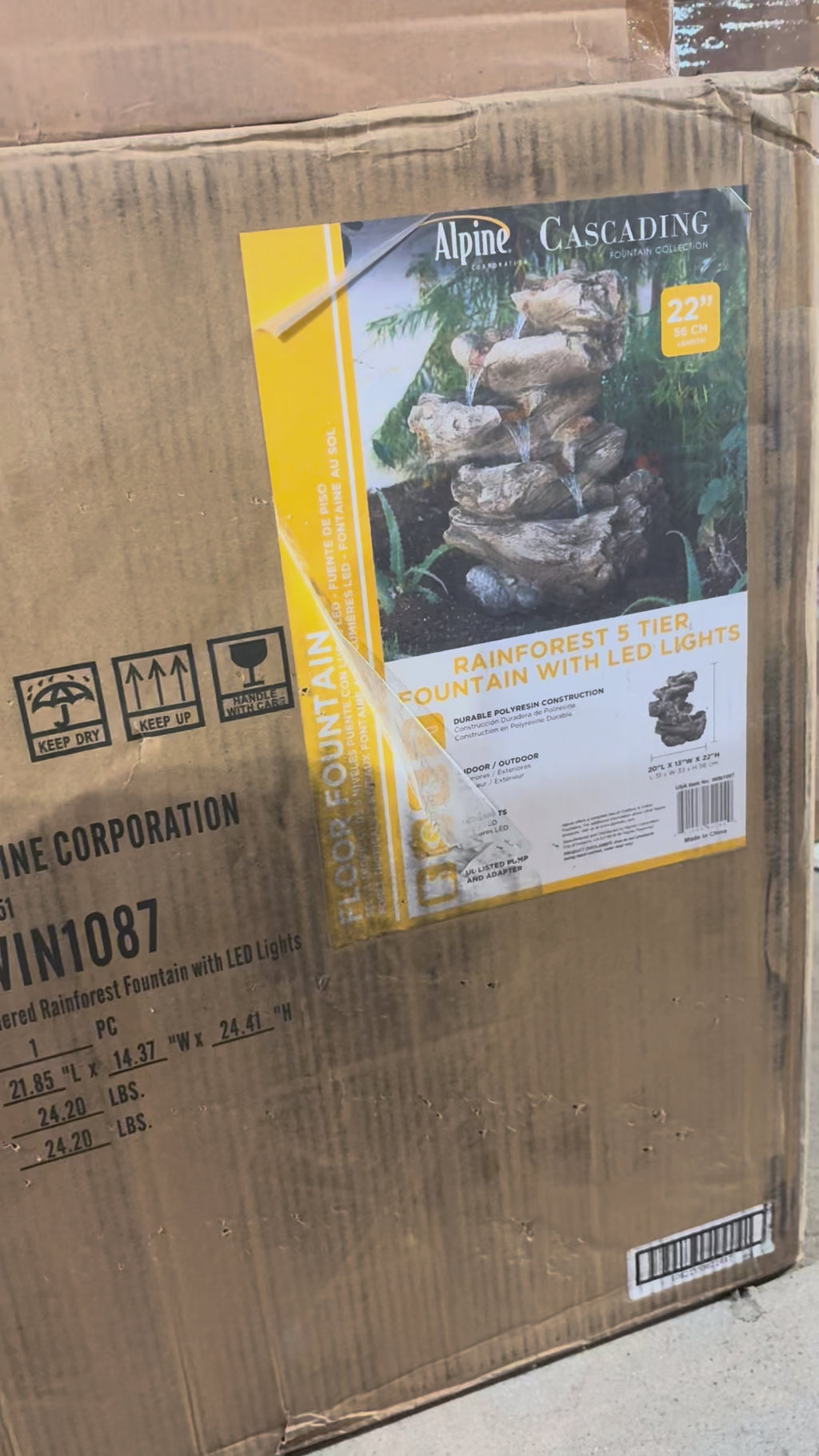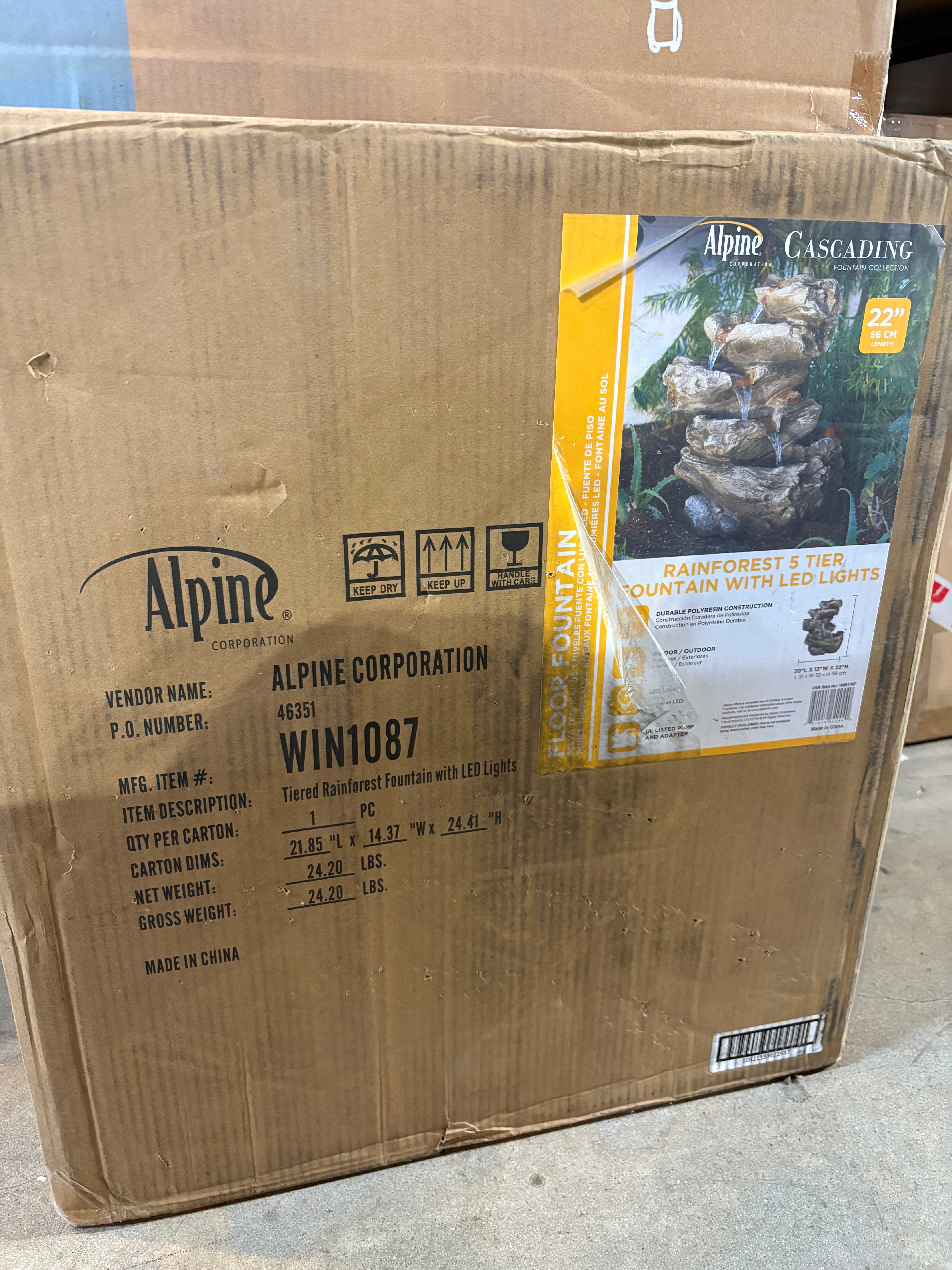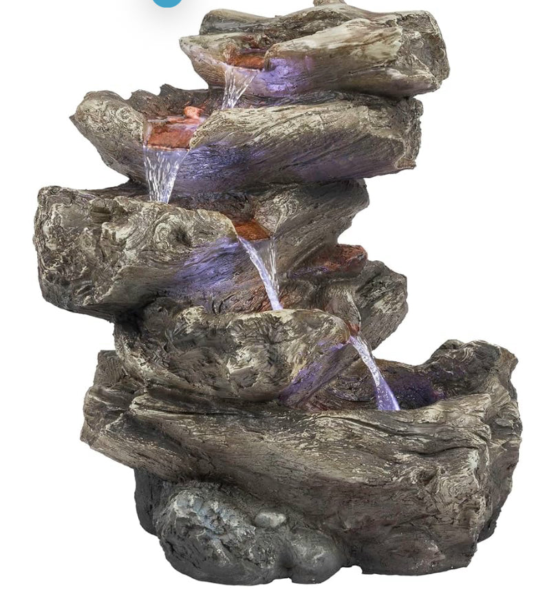 Product Information: Indoor/Outdoor Floor Waterfall Fountain with LED Lights, 5-Tiered Rainforest Fountain 22", Brown
